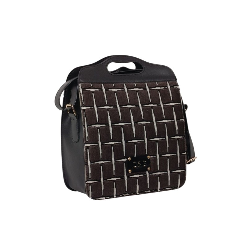 The Grid Grand is the compact, elegant edition of the Grid series, featuring clean lines, a striking geometric pattern, and understated luxury. Handcrafted in Greece from velvety tapestry-textured fabric with leather lining, it comes with a top handle, detachable crossbody strap, and metallic DRG logo. Measuring 33 × 38 × 14 cm, it’s perfect for carrying just the essentials in style.