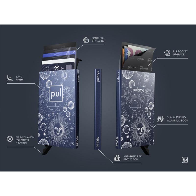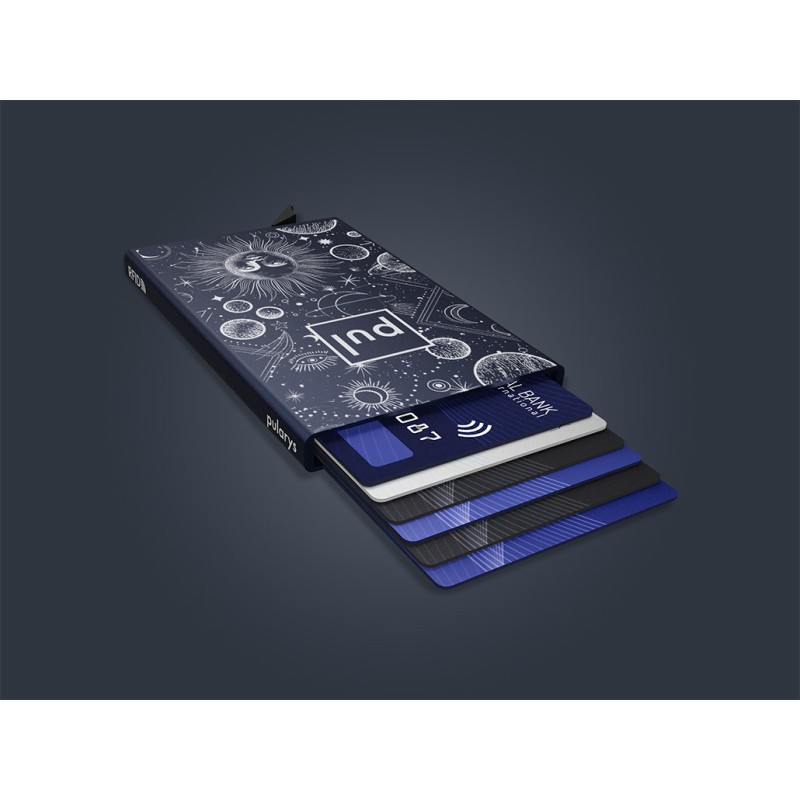 Stardust. Credit card case, made of sturdy aluminium, decorated with a space-esoteric print.RFID blocking technology will uncompromisingly and fully protect your payment cards and documents. Anywhere, anytime, you can rest assured - sensitive personal data and cash are protected against theft or unauthorised scanning. The gradual card ejection mechanism ensures easy and quick access to the contents of the case. Thanks to its slim silhouette and compact size, it will fit anywhere - in the smallest handbag, pocket or standard wallet. It will always be with you! A beautiful gadget for star lovers!