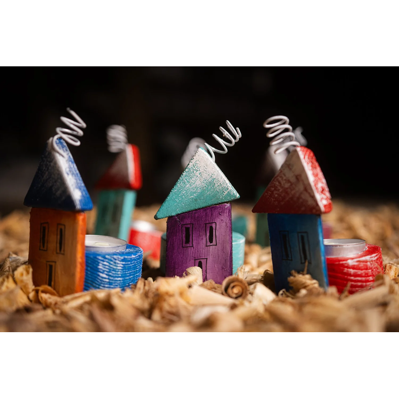 Wooden tealight holder house.Dimensions 6x7x11,5cm / 100gr
