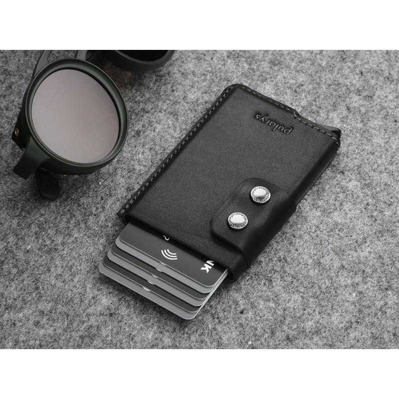 Made from vegetable-tanned Nomad leather. Amazingly capacious - will store many cards and documents, providing easy access to them, thanks to a special gradual ejection mechanism. An additional note pocket, a coin pocket and a flap with two snap fasteners will help you organise your contents, plus it just looks great! Thanks to the RFID technology used in the wallet design, your sensitive data and credit card funds are completely safe and protected against unauthorised reading or theft. Registered design, unique on the market.
