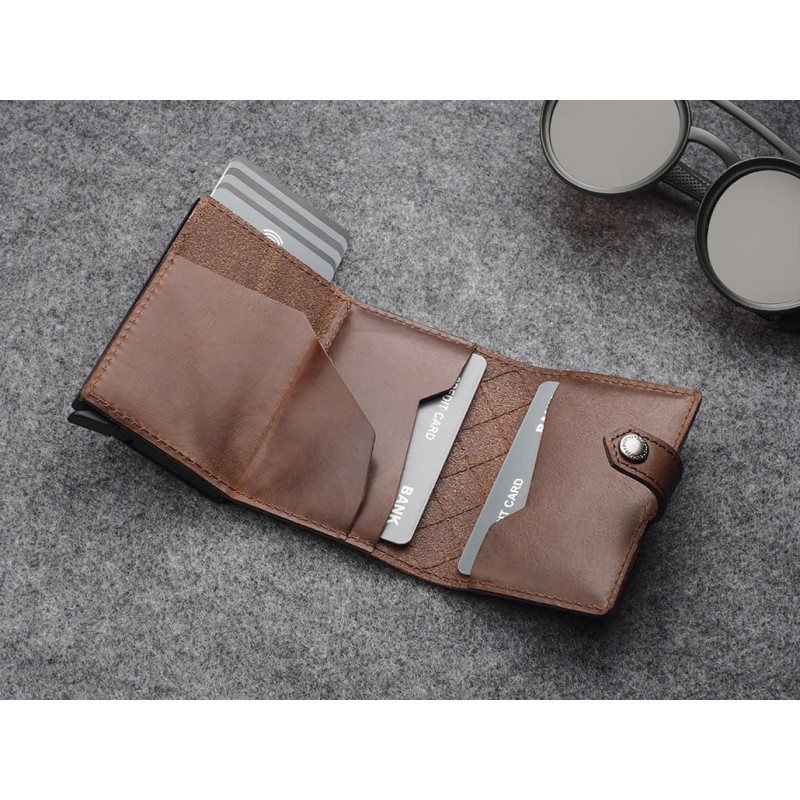 Keep your cards and notes close at hand, organised in two easily accessible pockets. An elastic band for notes and more is an added convenience. Thanks to the RFID technology used in the wallet design, your sensitive data and credit card funds are completely safe and protected from unauthorised reading or theft. The special gradual card ejection mechanism allows you to quickly reach for the one you are looking for. Registered design - unique and original!