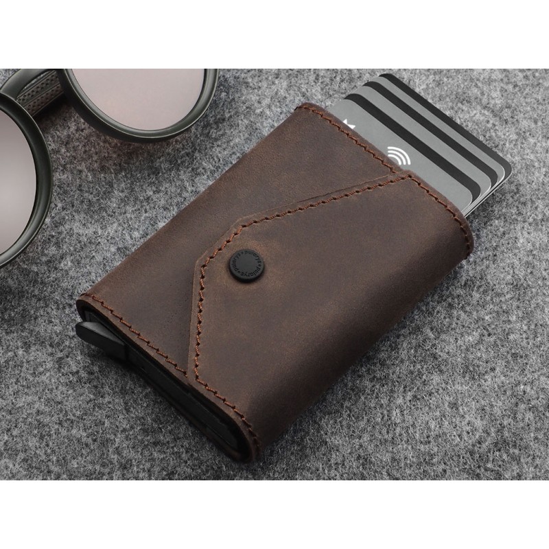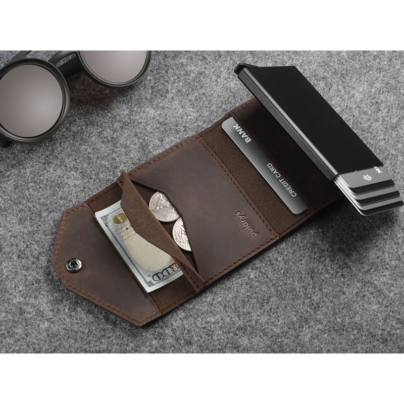 Amazingly capacious - will store many payment cards and documents. The special gradual ejection mechanism ensures quick and easy access to the cards. The elegant functionality of this wallet also includes an additional note pocket and a coin pocket. Thanks to the RFID technology used in its design, your sensitive data and credit card funds are completely safe and protected against unauthorised scanning or theft.