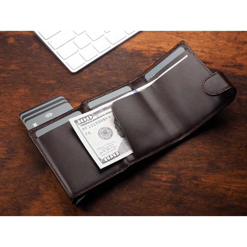 A small, yet highly practical wallet. It will store the essentials without taking up much space.