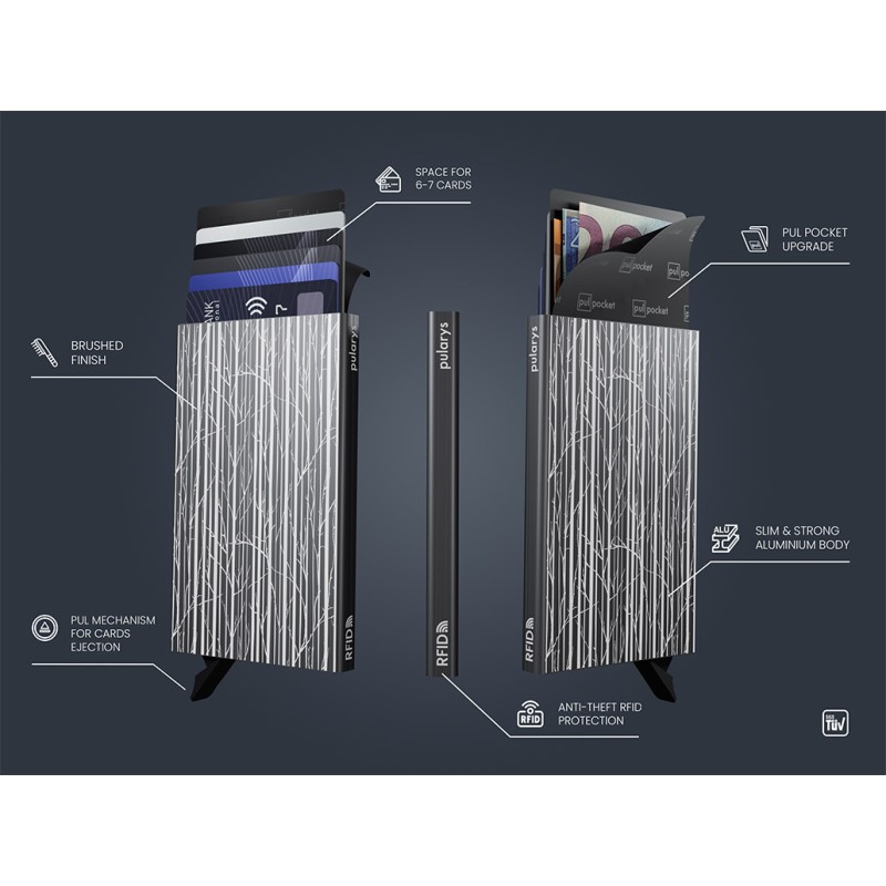 Made of brushed aluminium. A gradual card ejection mechanism provides quick and easy access to the contents of the case. RFID technology provides complete protection for your payment cards and documents. Anywhere, anytime, you can rest assured - sensitive personal data and cash are protected against theft or unauthorised scanning. Thanks to its slim silhouette and compact size, it will fit anywhere - in the smallest handbag, pocket or standard wallet. It will always be with you!