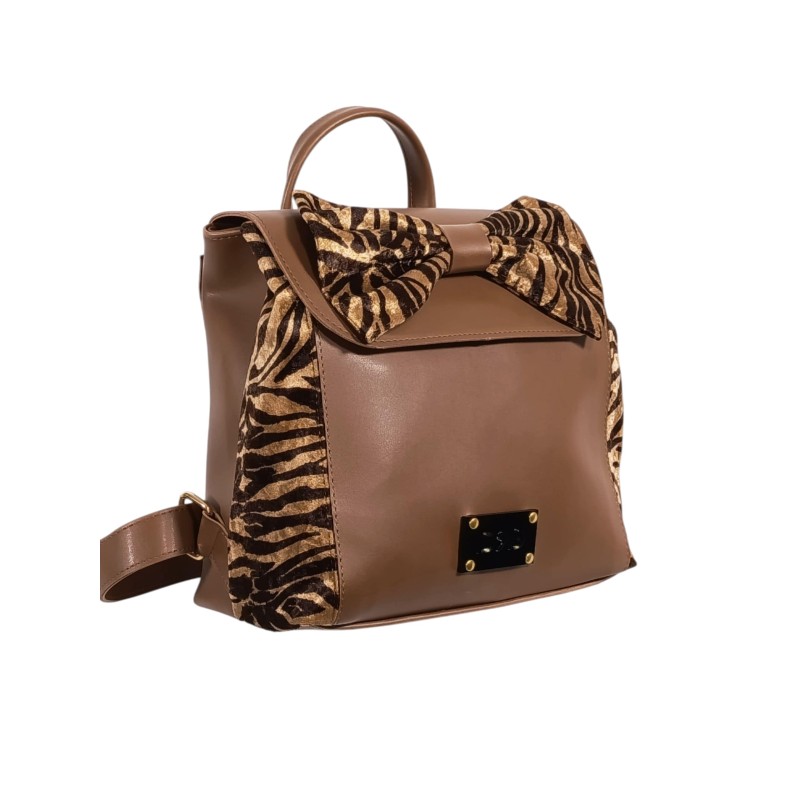 Zebra Bow Backpack Brown
